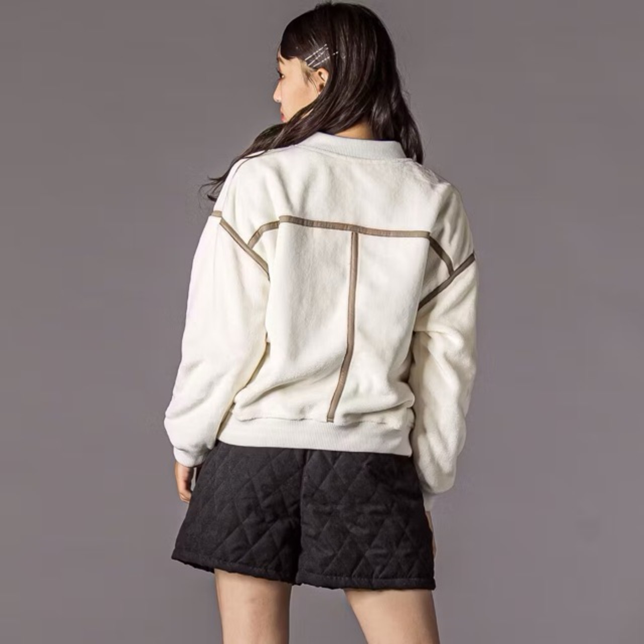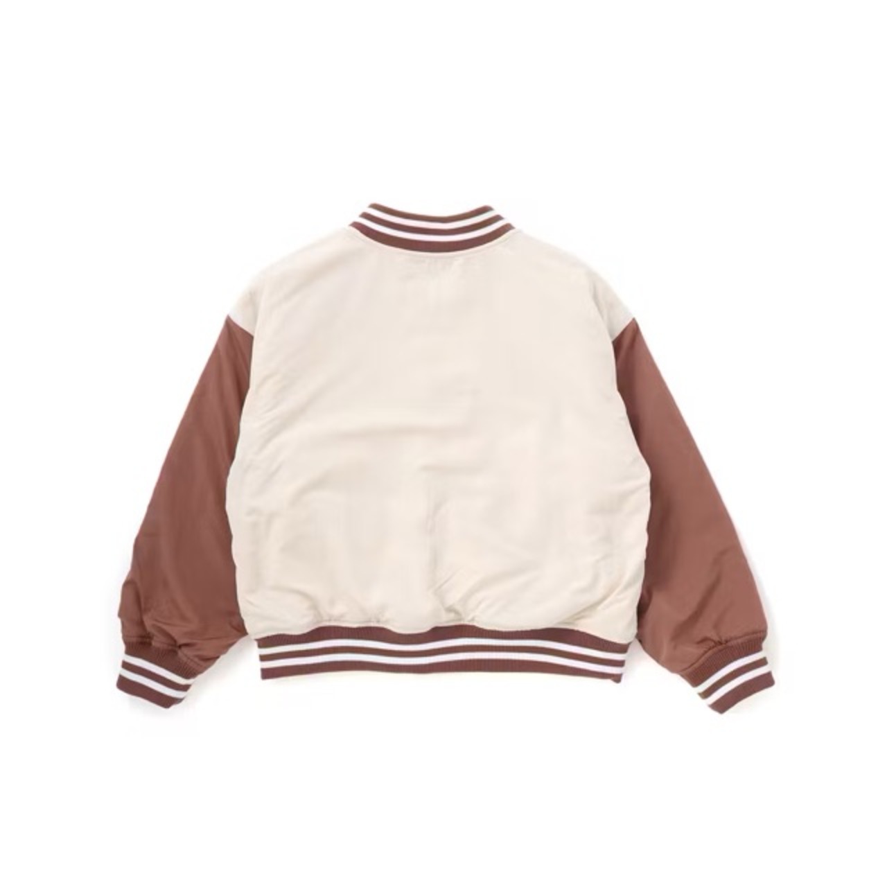 表は軽やかなエステルタフタでスタジャンらしいカジュアル感、裏はムートン風フリースでふわもこの存在感。