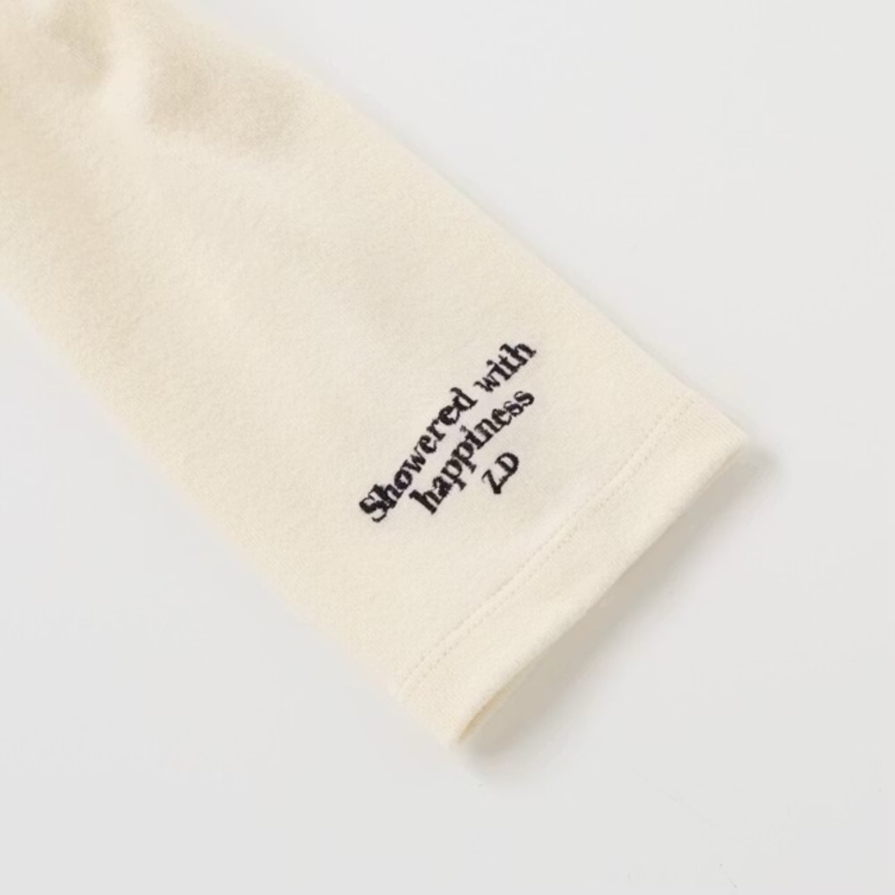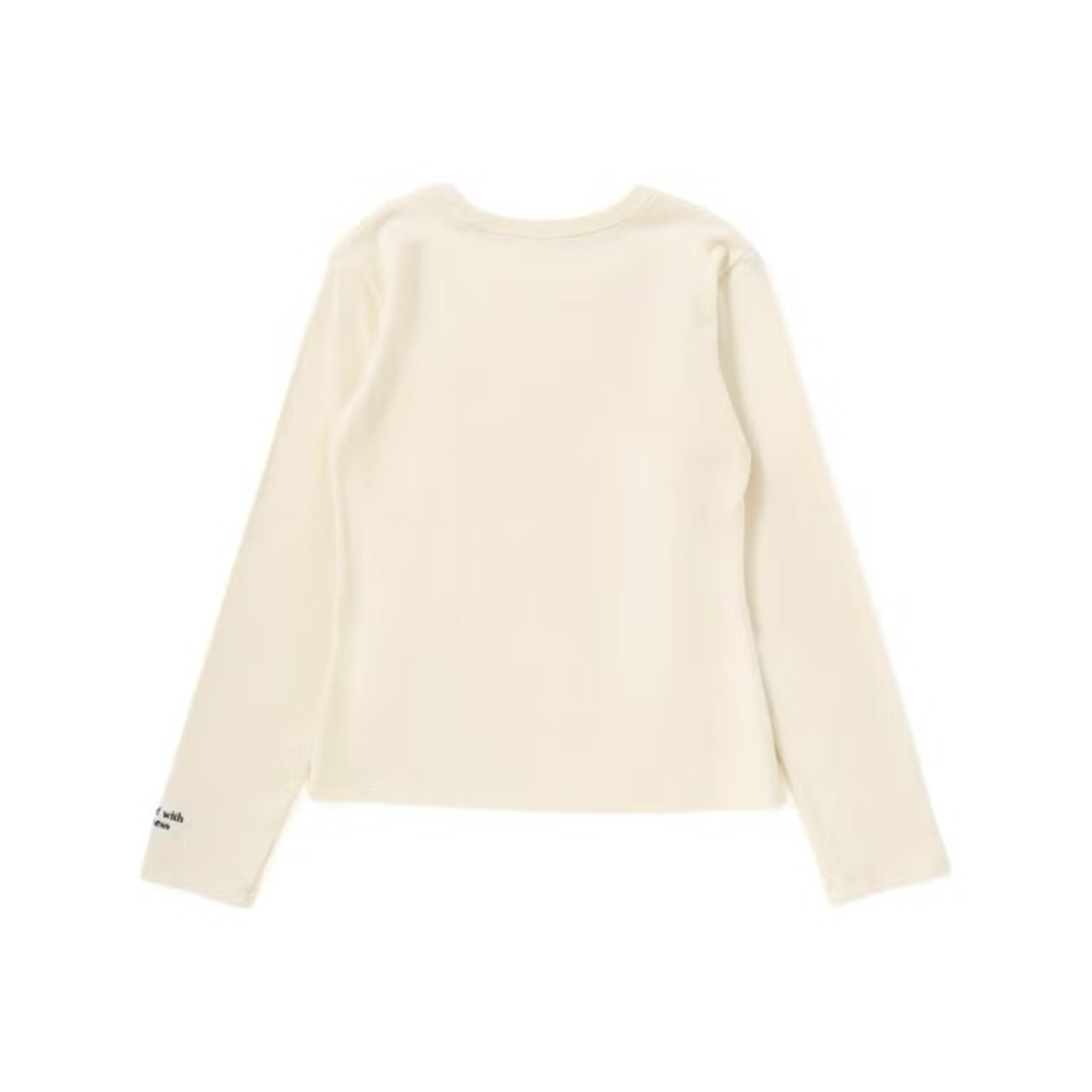 袖にワンポイント刺しゅうが入ったTシャツに、もこふわ質感のビスチェを重ねたセットは、手抜き感ナシのオシャ見えコーデ。
