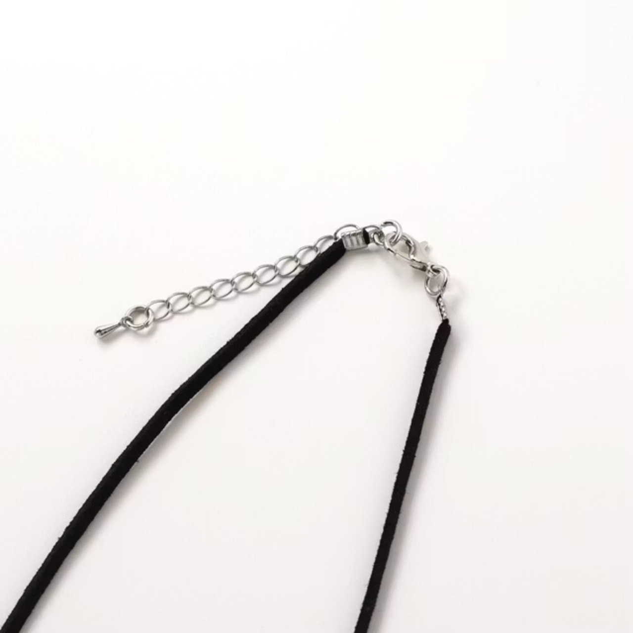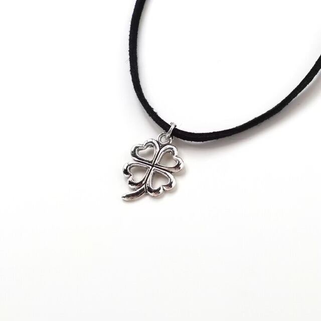 胸元にはクローバーチャーム付きのネックレス付きで、こなれた着こなしにさりげない幸運感をプラス。