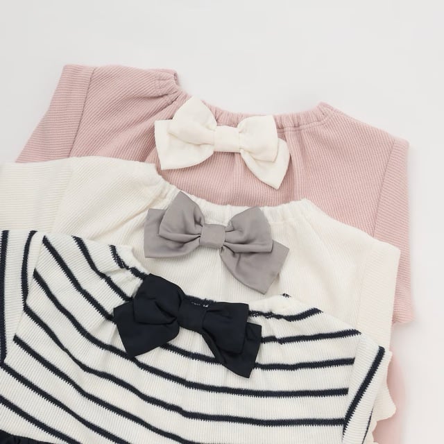 フェイクパールとバックネックのリボンが、上品な雰囲気を醸し出します。