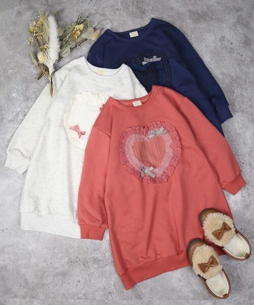 ガーリーな雰囲気たっぷりのハートデザインが目を引くスウェットワンピース♡