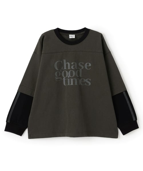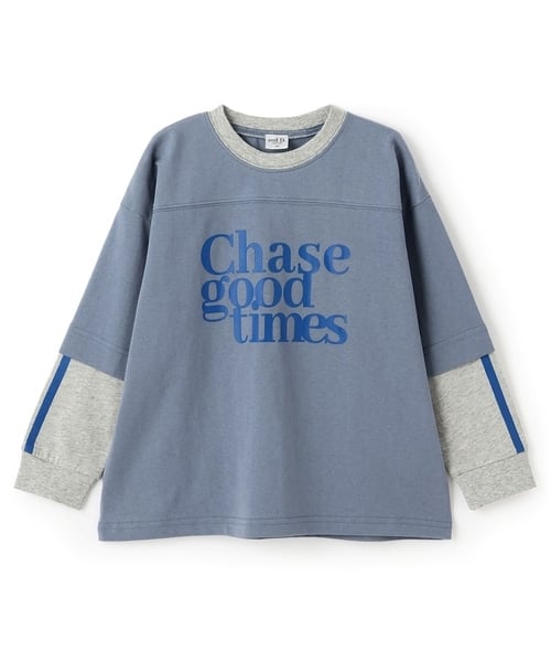 TEEシャツとラインロンTをレイヤードしたようなデザインで、1枚でスタイリングがぐっと華やかになります。