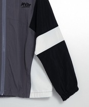 曲線と直線を組み合わせた凝った切替のナイロンジャケット。